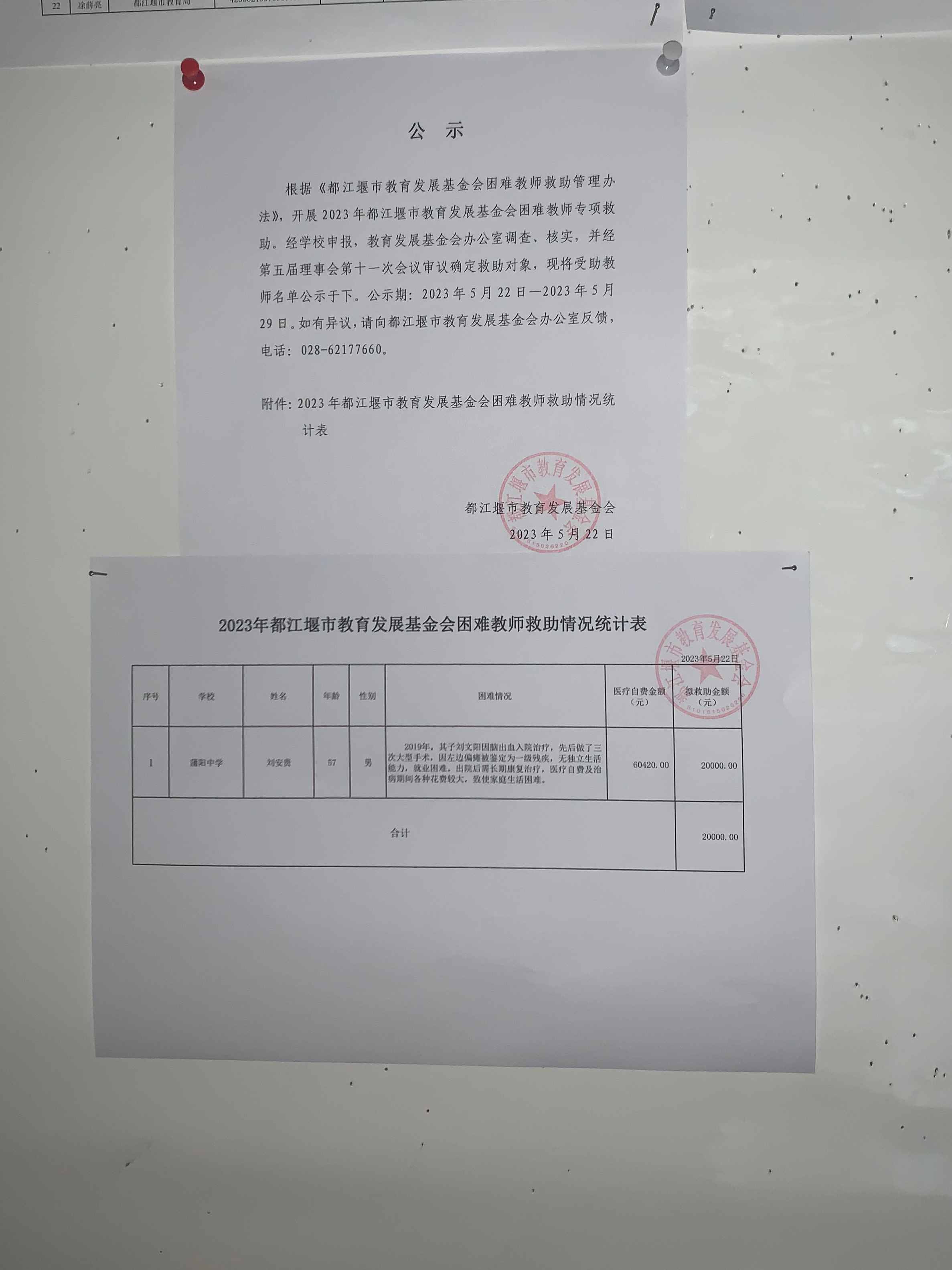 2023年都江堰市教育发展基金会困难教师救助情况公示
